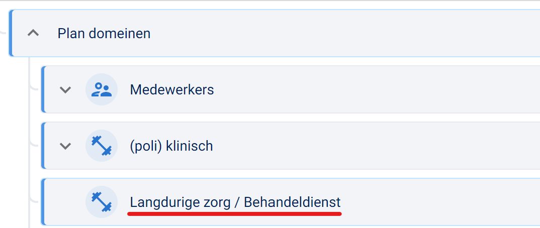 Strategie → Organisatiemodel → Plandomeinen →Landurige zorg/behandeldienst