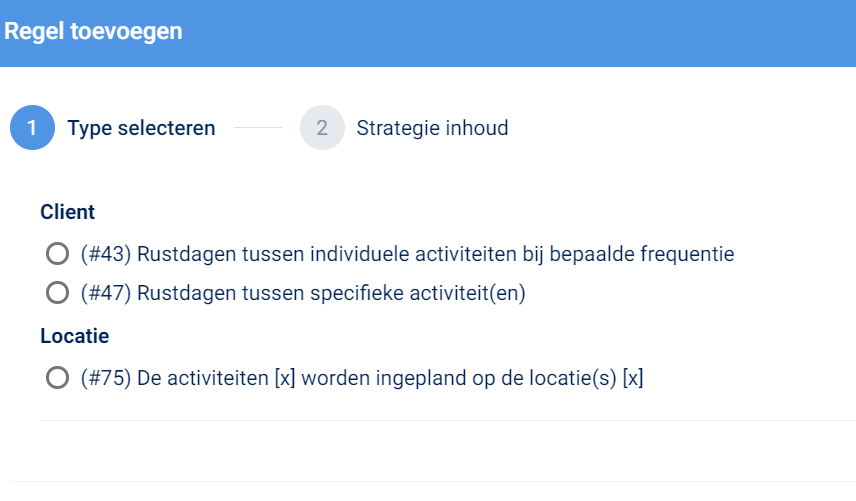 Scenario: In de langdurige zorg gaat bijvoorbeeld een fysiotherapeut vaak één of meerdere dagdelen per week naar een locatie om de cliënten met een behandelvraag te behandelen. In Roosterplatform maak je een behandelprogramma voor de cliënten. Hierin geef je aan welke activiteiten er bij de client gepland moeten worden. Met de strategie voor de langdurige zorg worden de cliënten van een locatie automatisch in een blok in de agenda gepland. Zo weten de client, familie van de cliënt en alle zorgmedewerkers wanneer de fysiotherapeut op de locatie komt. De fysiotherapeut weet welke cliënten met welke duur er in dit tijdsblok behandeld moeten worden, daarnaast is er flexibiliteit in wanneer exact welke cliënten behandeld wordt in dit tijdsblok.