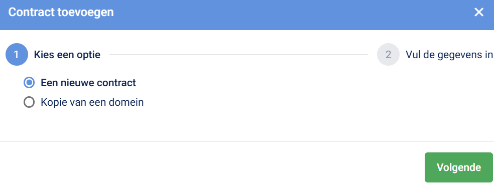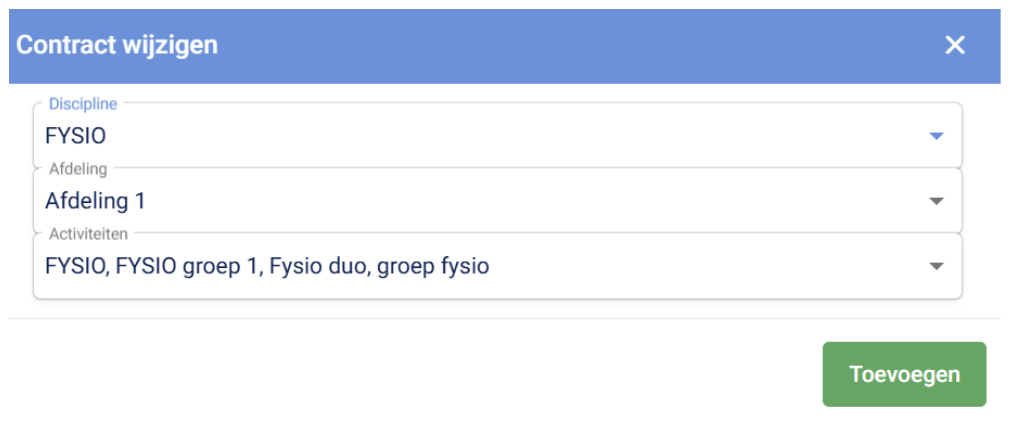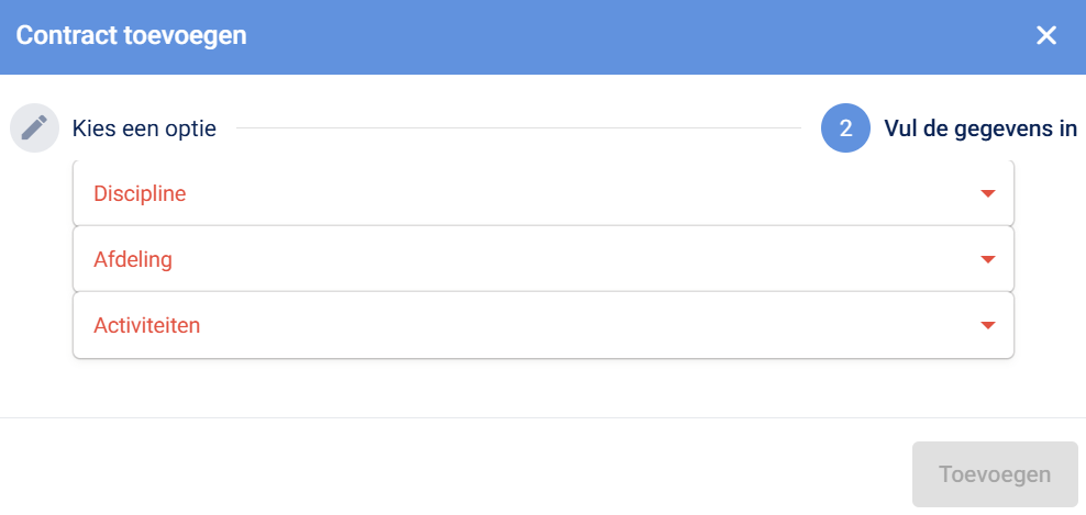 Hierbij kopieer je een bestaand contract of domein. Dit is handig wanneer je bijvoorbeeld dezelfde discipline en activiteiten wilt hergebruiken en alleen de afdeling nog hoeft aan te passen.