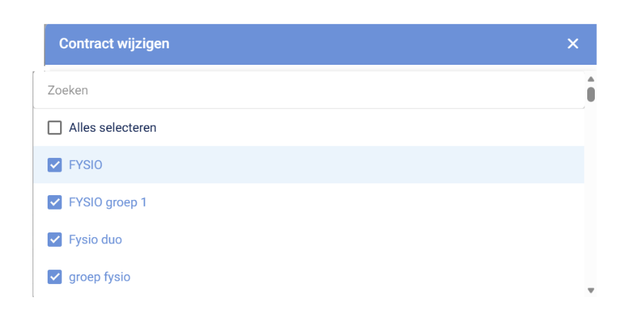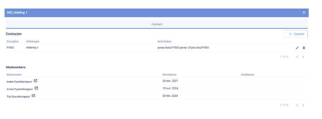 Onder ieder contract zie je welke medewerkers dit contract gebruiken.