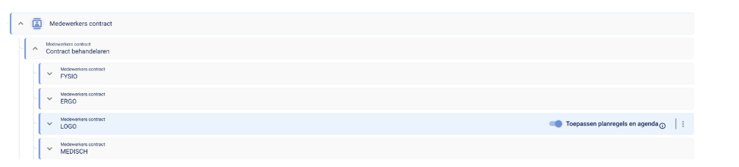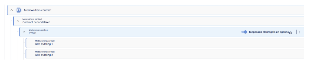 De contracten in het medewerkerscontracten-domein worden vastgelegd in een boomstructuur.