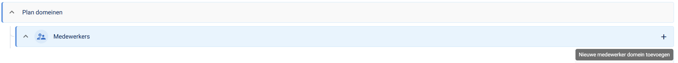 + en ⋯ verschijnen alleen wanneer je met de muis over het domein beweegt.